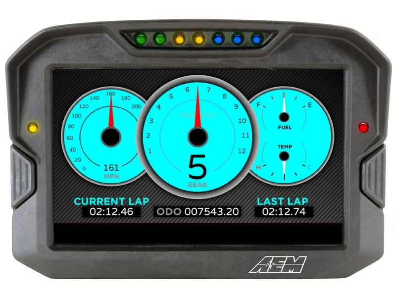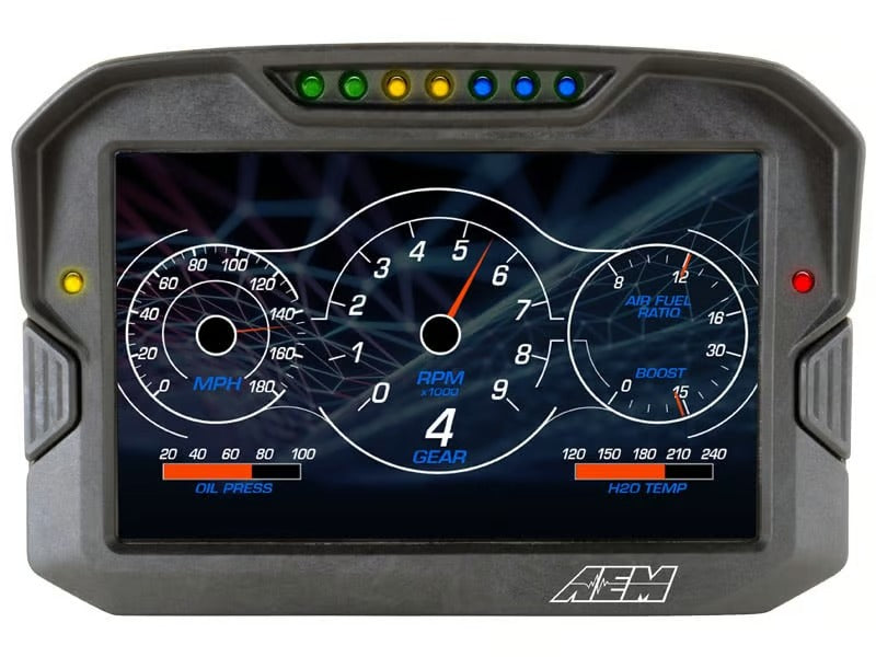 Elevate your driving experience with the AEM CD-7 Carbon Digital Dash Display, designed for performance and clarity in any environment. Featuring a full-color, 7-inch screen with an impressive 800x480 resolution, this display is engineered to be readable even in direct sunlight, thanks to its 1000cd/m² brightness and anti-glare filter. Encased in a rugged, lightweight flow-molded carbon fiber composite housing, the CD-7 Carbon is built to withstand the rigors of motorsport while maintaining an ultra-sleek profile.
